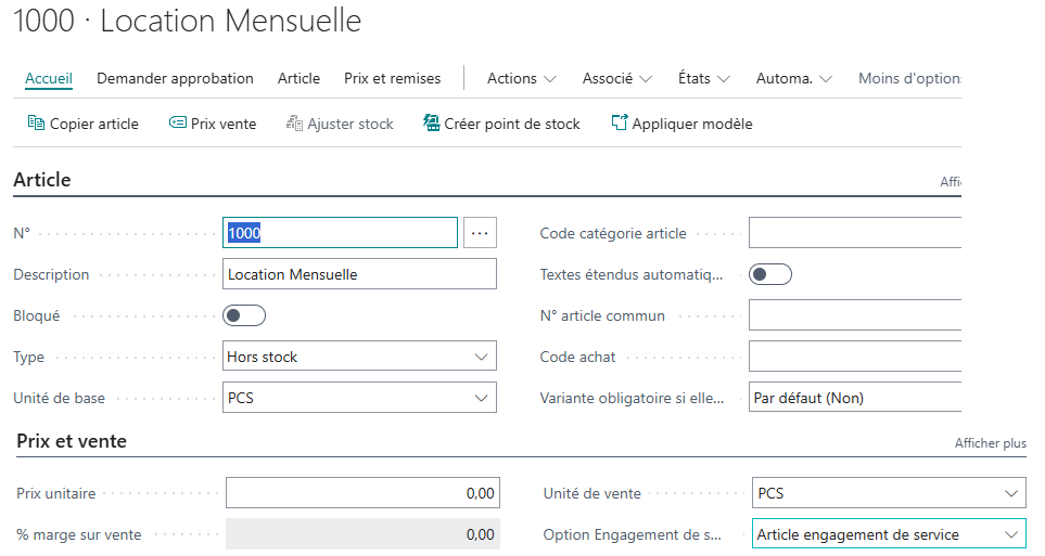 3- Création d’un article de type hors stock.