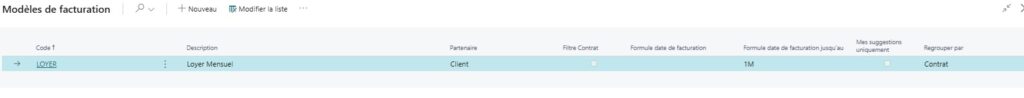 Il suffit de sélectionner le modèle de facturation. Cela permet de déterminer les éléments décrit sur l’image ci-dessous (calcul date de facturation, date de fin de facturation, le regroupement de factures (contrat ou partenaire).