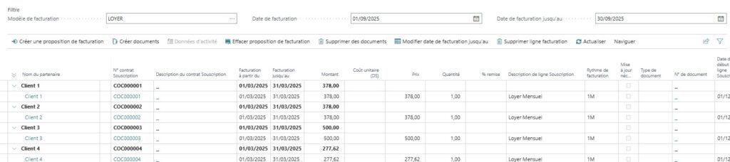 La problématique est la suivante : nous avons plusieurs clients à facturer mensuellement avec un loyer fixe.