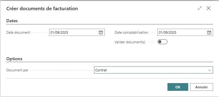 Ensuite, il est possible facturer en cliquant sur « créer documents » et de les valider directement (option valider document(s)).