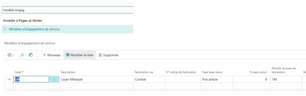 Le modèle d’engagement permet de paramétrer le type de facturation, le type de base de calcul et la périodicité.