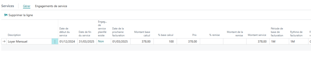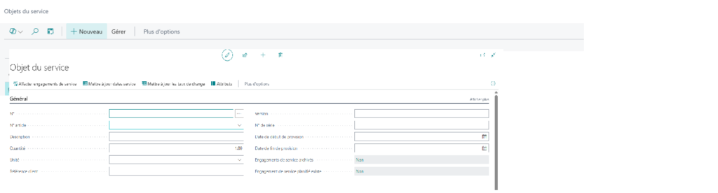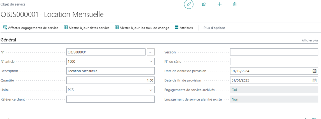 L’objet du service permet de déterminer plusieurs critères du service que le client détient : l’article, le montant, la périodicité, la durée, le montant du service.