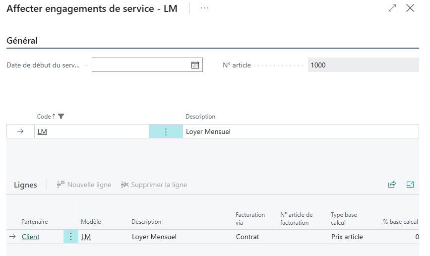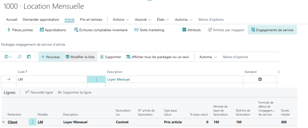 L’engagement de service sert à lier l’article et le package d’engagement de service et donc de déterminer le ou les engagement(s) de service.