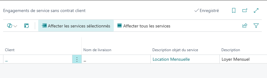 Cliquer sur affecter les services sélectionnés pour importer les services dans le contrat