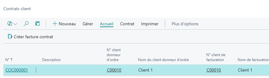 Il faut maintenant créer un contrat pour facturer le service.