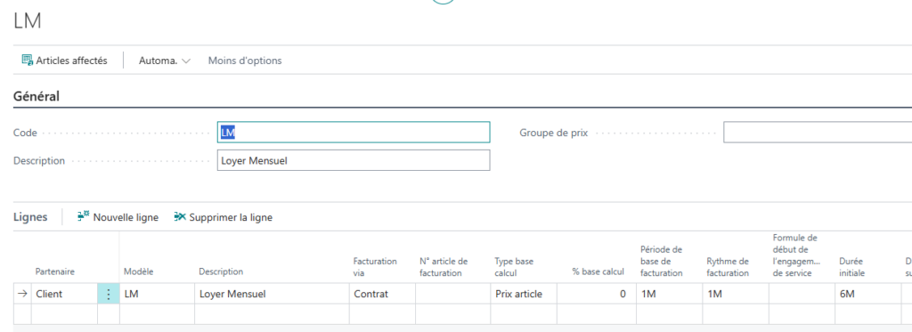 Il faut paramétrer l’article, la quantité, la date de début et de fin dans l’onglet Général.